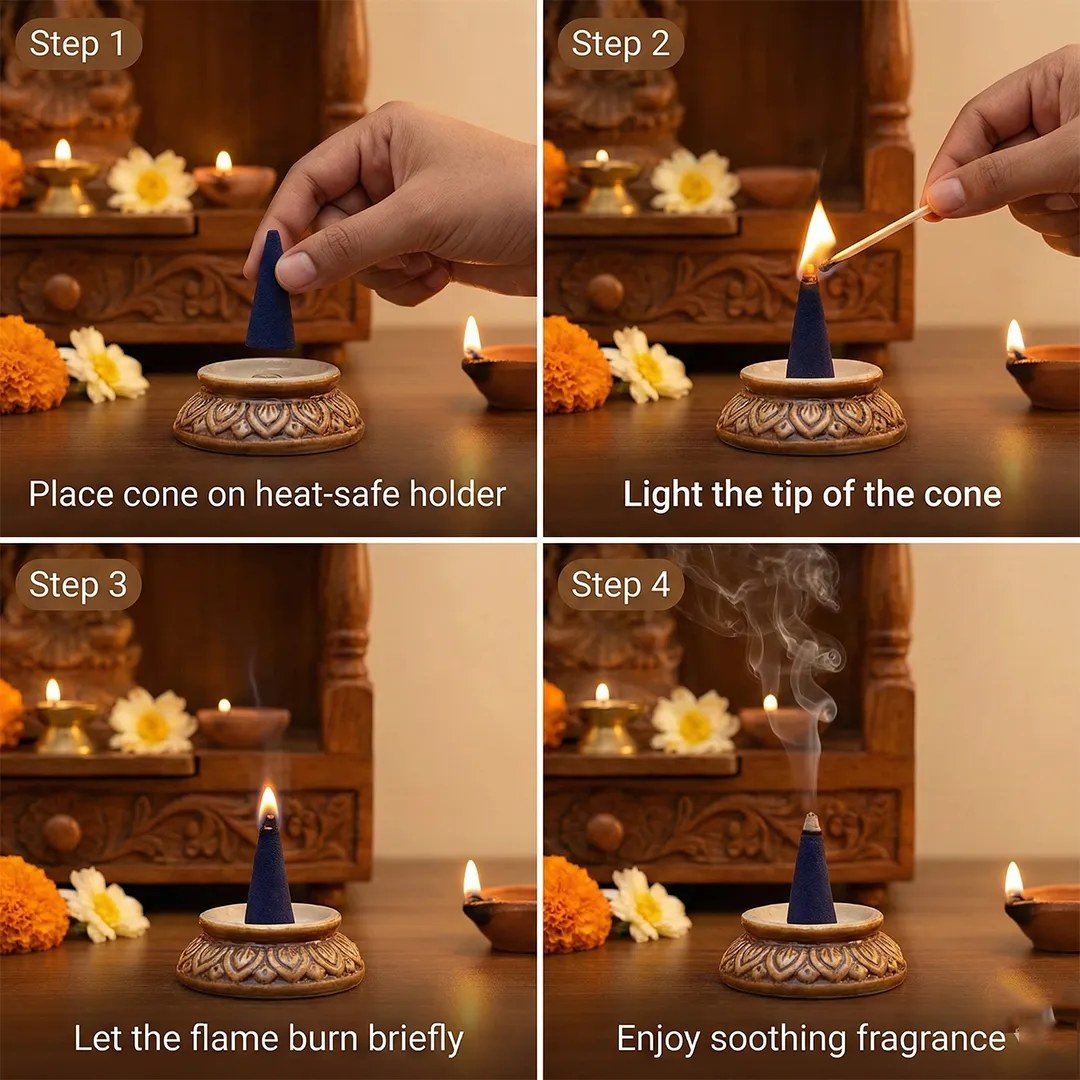 Place the cone on a heat-safe incense holder