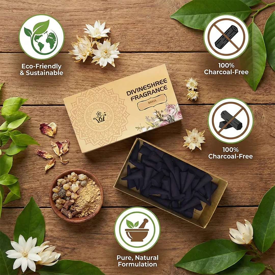 Bakul Incense Cones | Pack of 2 | 50 Dhoop Cones each Pack |Eco-Friendly & Charcoal Free