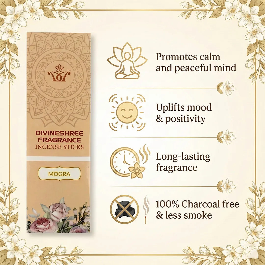 Experience tranquility with mogra incense sticks. These incense sticks have an aroma that is gentle, sweet, and soothing, providing a great addition to your everyday routine. With these incense sticks, you will be able to create a serene atmosphere that allows you to relax and unwind with ease.