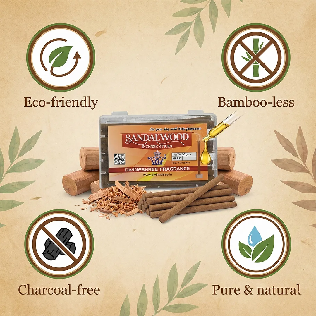 Sandal Wood Dhoop Incense Stick |Pack of 2 |Eco-Friendly & Bamboo Less