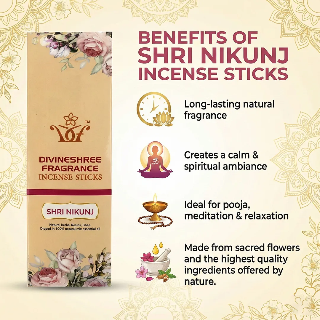 Create a calm and devotional atmosphere with Shri Nikunj incense sticks. The fragrance feels gentle, pure, and comforting, making it suitable for daily use. Designed for regular rituals and quiet moments, it helps keep your surroundings peaceful while offering a simple and pleasant aromatic experience throughout the day.